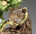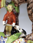 These figures are usually produced with a lion standing in the centre. This figure is quite unique as the figure at the centre is a costume dressed monkey.