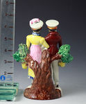 A fine pearlware bocage type figure of the two dandies modeled standing on an oval base. The decorative pair are well decorated in quality enamel colors and were made in the early 19th century period in Staffordshire England.