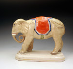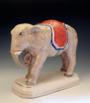 The largest jungle animal produced by the Staffordshire potters. The elephant figure stands ten inches high is about eleven inches long. The figure is in excellent unrestored condition and is a very rare piece from the Victorian era.