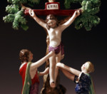 Antique Staffordshire figure of Christ about to be taken from the cross by Mary and Joseph. This rare Staffordshire ceramic figure group is very well modelled and decorated in good quality enamels. This figure is usually attributed to be the work from the Walton factory. The figure does have all the key hallmarks of Walton but to date no example has been found marked WALTON.