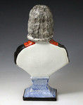 The bust is modelled on a blue socle base which gives an unusually strong decorative appeal, some Wesley busts can be a little dour. This example is very well executed with good attention enamel application and modelling.
