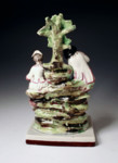 The bocage is of a rare and unusual form and the figure has a distictive uniqueness when compared to similar Staffordshire pottery figures of the late 18th and early 19th century in England.