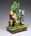 Antique Staffordshire pottery figure of a couple being married by the blacksmith at Gretna Green Scotland just over the English border. The Marraige Act of 1823 enabled couples to be married without parental consent.However, to this day, marraiges are still performed in Gretna Green.Romance is not totally dead.