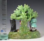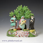Antique English pottery pearlware bocage figure known as the Tythe Pig Group.