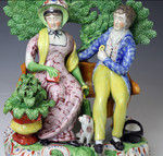 Staffordshire pottery pearlware figure group with pine cone bocage from the "Patriot Group" of figures and made in 1820 period England.