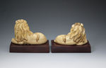 A fine pair of Wood and Caldwell pottery pearlware figures of a lions on oblong bases.