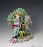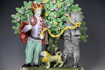 Staffordshire pottery pearlware bocage figure group of a troubador with lion and bear