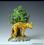 Staffordshire pottery pearlware figure of a tiger with bocage early 19th century English