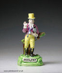 Staffordshire pottery pearlware figure titled Paul Pry, English antique period c1820