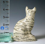 Antique English pottery agateware stone ware cat naively modeled sitting on a base, a rare and unusual feature.
