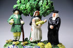 Staffordshire pottery pearlware tithe pig figure group with rare weeping bocage.