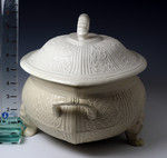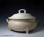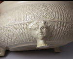 A fine and good sized relief molded English stoneware saltglaze tureen and cover.