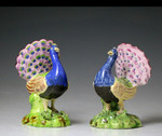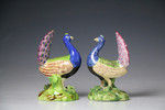 A matched pair of Staffordshire pottery pearlware figures of peacocks at display.