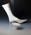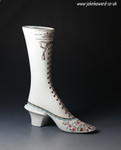 A very rare English pottery "Boot or Shoe Warmer" with fine aesthetic type decorations.