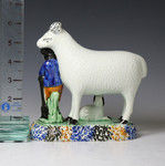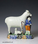 Yorkshire pottery figure a ram with diminutive shepherd.antique period c1810